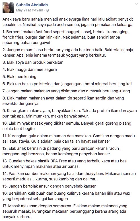 1. Berhenti makan fast food seperti nugget, sosej, bebola ikan/daging, french fries, burger dan lain-lain. Nak selamat, buat sendiri tanpa sebarang bahan pengawet.